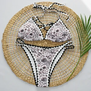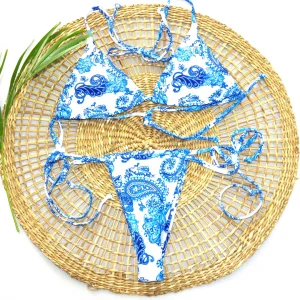 Bali est le bikini pour succomber à l’élégance et au style raffiné pour être belle sur la plage. Ce maillot de bain beige texturé se caractérise par ses liens à nouer plus foncés et sa perle blanche entre les bonnets. Le haut comme le bas sont ajustables selon comment vous souhaitez le porter ! Les coques sont amovibles !