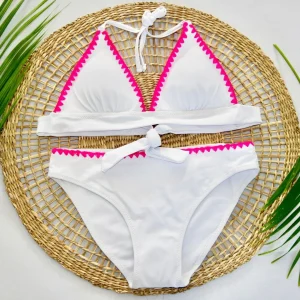 Yuna est un maillot de bain 1 pièce disponible en plusieurs coloris. Le devant du maillot de bain présente un décolleté plongeant bordé de détails en crochet, laissant apparaitre discrètement le ventre. L’arrière du maillot de bain met en valeur les lignes du dos avec une chute arrondie. C’est le maillot de bain 1 pièce qui épouse la silhouette.