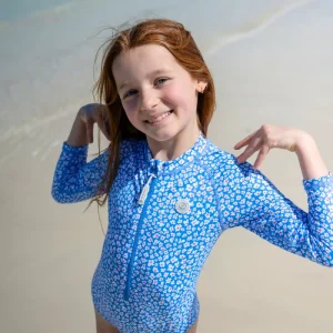 GIRL’S LONG SLEEVE SWIMSUIT – Blue Garden