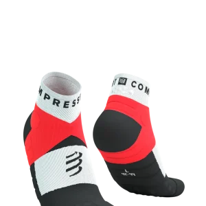 Chaussettes Compressport Ultra-trail Socks Basses NOIR blanches et corail fluo