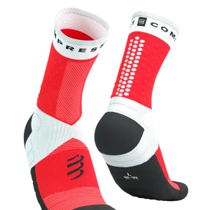 Chaussettes Compressport Ultra-trail Socks hautes NOIR blanches et corail fluo